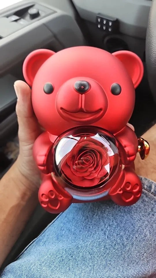 Our Eternal Rotating Bear Rose Jewelry Gift Box is the perfect answer. Not only does it serve as a beautiful display with its rotating bear and preserved rose, but it also functions as a practical jewelry organizer with a hidden compartment for safekeeping small treasures. Ideal for birthdays, anniversaries, or any special occasion, this box is a gift that keeps on giving.